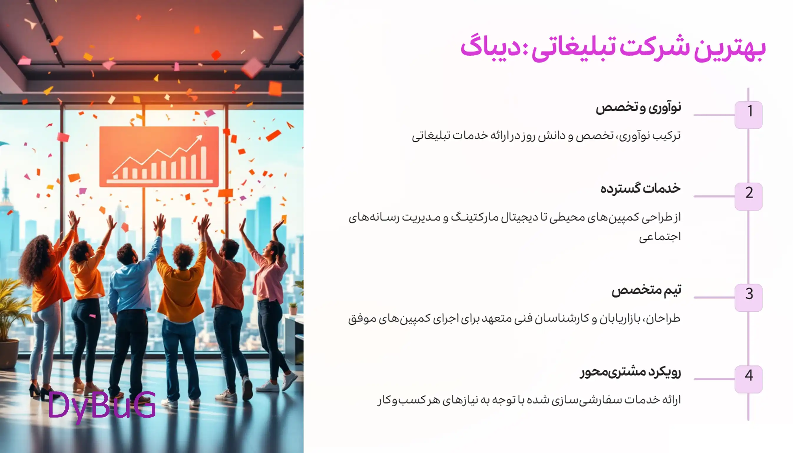 با خدمات تبلیغاتی دیباگ، کسبوکار شما در سریعترین زمان ممکن به مخاطبان هدف خود میرسد و فروش شما به طرز چشمگیری افزایش پیدا میکند. با تکیه بر تحلیل دقیق رفتار مخاطبان و استفاده از تکنولوژی، کمپینهای تبلیغات آنلاین شما به طور مداوم بهینهسازی میشوند تا بیشترین بازدهی و کمترین هدررفت هزینه را داشته باشند. با ما، هر ریال از بودجه تبلیغاتی شما در جای درست مصرف میشود و نتیجه آن افزایش مشتریان و درآمد بیشتر خواهد بود.